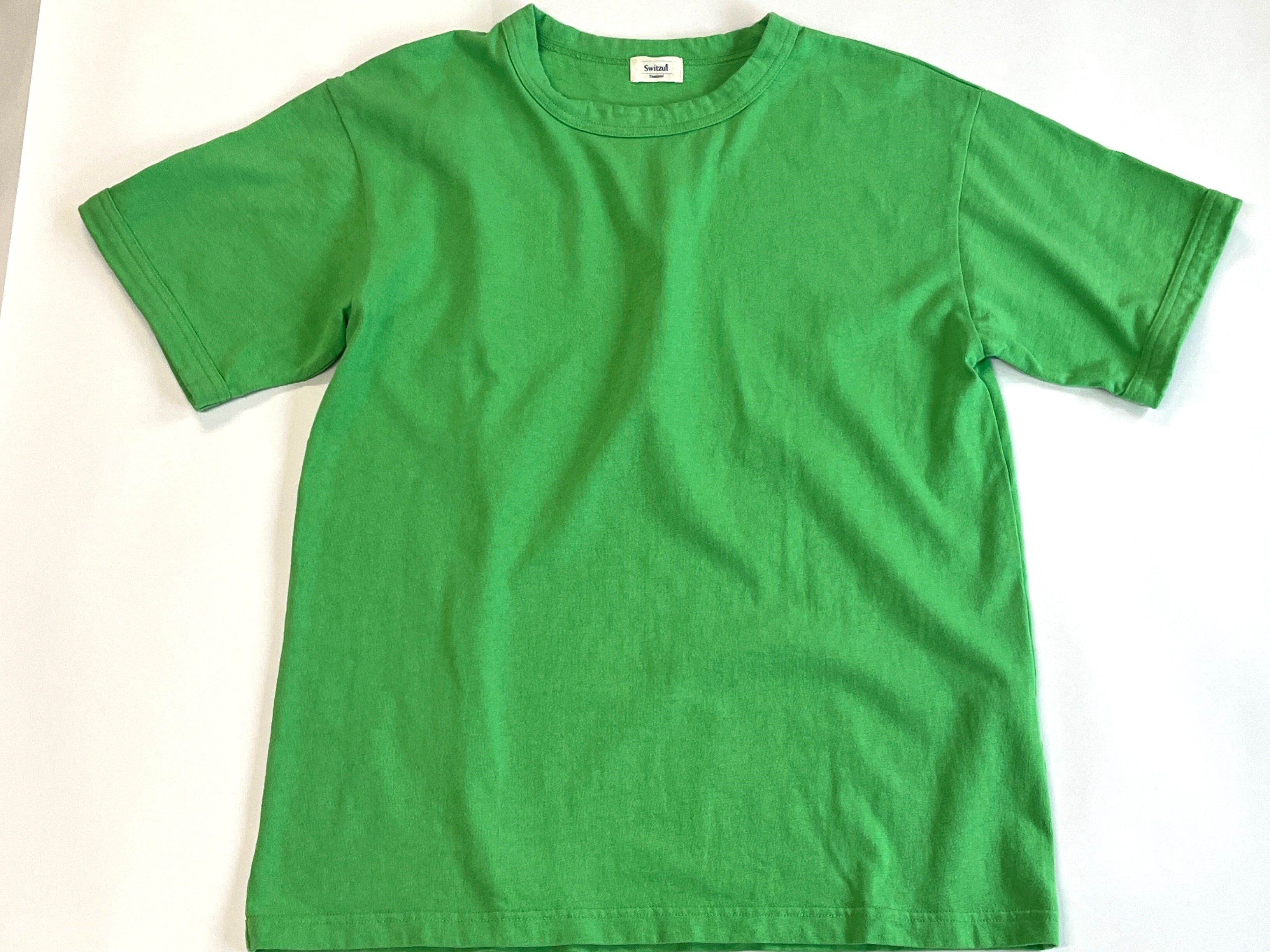 これで編んだ定番天竺で製作したオリジナルTシャツ、ストンと着れていろんなボトムスとも合わせやすく毎日でも着たい‼と思えるような形に縫製屋さんが仕上げてくれました。